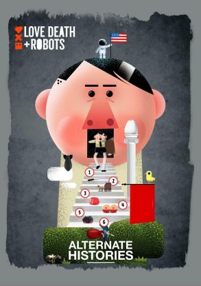 En netflix encuentras la serie Love, Death & Robots , en la historia: «Alternate Histories» se trata de: ¿Quieres ver morir a Hitler de las maneras más fantásticas? los multiversos muestran varias posibilidades, pero todo termina en que «alguien» o «Algo» llega a la luna, tarde o temprano.