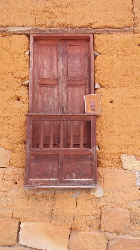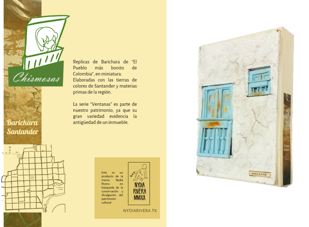 Replicas de las ventanas de Barichara hechas con materiales ecológicos como Tierras de colores naturales, aserrín, cartón, y madera.